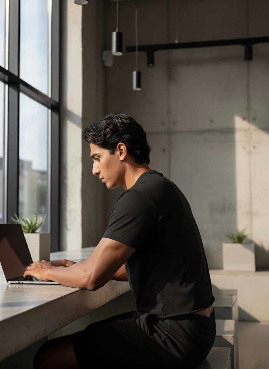 An essential piece of the modern wardrobe. The Structural Cotton Crew is sewn from natural cotton, chosen for its substantial hand-feel and engineered drape. Cut with an uncompromising, box-fit silhouette to create a strong vertical line. Finished with a raw, scissor-cut hem that is designed to gently roll with wear, offering a unique, tactile deconstruction of the classic form.